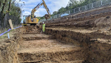 Earthworks required the embankment to be built out with a stepped formation detail. We used 1700t of imported aggregate to raise the ground level by 4m.