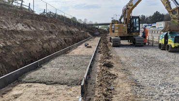 We installed drainage, NRTS communications ducting and infrastructure, electrical lighting infrastructure, and will shortly lay the sub-base of the carriageway.