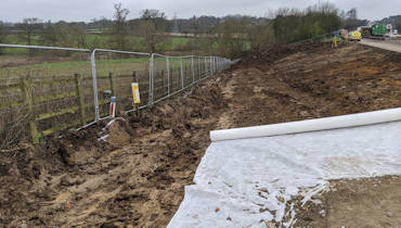 For this bay, the earthworks solution is a sheet-piled retaining structure. This supports the new bay where the adjoining embankment slopes away sharply.